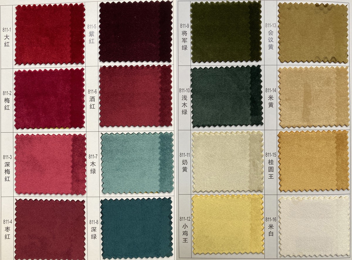7)特点:阻燃性能优越且环保,比普通丝绒更柔软,色牢度更高,没静电、遮光吸音、垂感顺畅